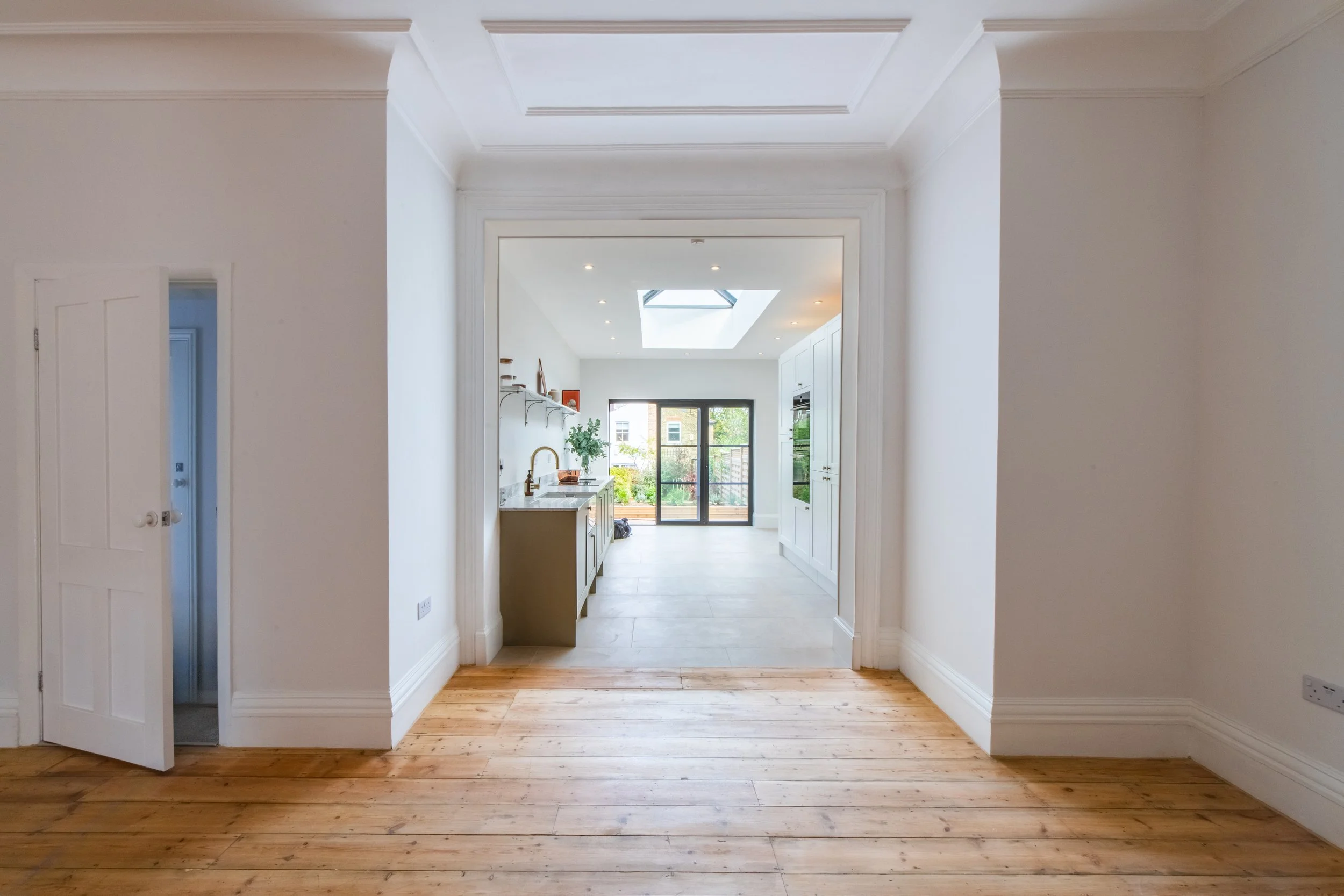 Purchased in auction, total refurbishment and restoration of a Victorian property; completed with a large kitchen extension at the rear.